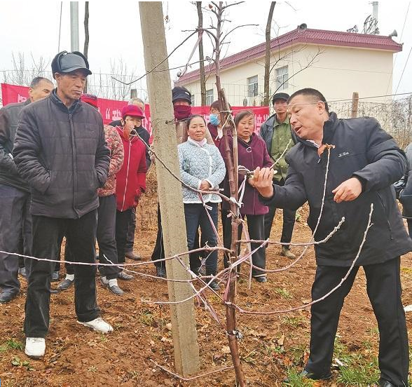 3月3日,高级农艺师袁锋印(左一)正在铜川市耀州区小丘镇红岩村给种植户果树修剪手艺。通信员 王艳摄3月3日,一场春雪悄悄而至。晌午事后,铜川市耀州区小丘镇红岩村村平易近邢胜利慌忙吃完饭,“下雪了,你干啥去?”“正在群里说了,今天市上的专家来教新品种苹果树修剪手艺,主要得很。”邢胜利一边回覆老婆的问话,一边走出。“果树忙‘打扮’,剪枝要赶早。农技学到手,丰收乐融融。春季办理是全年丰登丰收的环节。”铜川市果树试验坐原、高级农艺师袁锋印一启齿就吸引了村平易近的留意。“大师看,这棵苹果树有不少轮生枝、徒长枝。它们会跟成果枝争养分,华侈树体养分……”袁锋印边讲边示范。纷歧会儿,一个规范的树形就修整出来。“树靠根长、根靠叶养,根系兴旺,叶则肥大,叶片肥大,树体才兴旺,各‘器官’相辅相成。”看着身边群众热情高涨,袁锋印也越讲越起劲。村平易近李天德是个种苹果的“老把式”。客岁,他家的3亩秦脆苹果共套了6万个袋子,卖了10万元。“以前舍不得剪枝,一个枝上结很多多少个果子,质量就下来了。”他感伤,“科学修剪能削减果树病虫害,提超出跨越产效益。”“袁教员今天来机遇罕见,我们让他给咱多讲一会儿吧。”30多名村平易近蜂拥着袁锋印走出果园,向村委会会议室走去。眼下,正值春耕春管的环节时节,耀州区连系各乡镇农业财产特点及农人现实需求,组织多场春耕农技讲堂,内容涵盖水肥办理、果树修剪、病虫害防治等。(通信员 王艳)