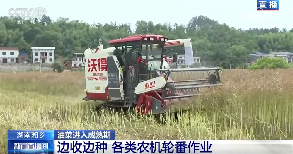 眼下,全国粮食出产进入了环节期。颠末持续几天的降雨,湖南多地已雨过晴和,种粮户们正放松做好春耕、春督工做。湘潭湘乡市是全国粮食出产大县,粮食种植面积常年不变正在100万亩以上。本地不少农户采用“稻油轮做”的模式,眼下恰是收割油菜籽、播种一季稻的农忙时节。细致环境,顿时连线正正在现场的总台记者葛才逸。记者来到了湘潭湘乡市泉塘镇双江村,油菜现正在长得怎样样了?油菜的顶端曾经呈金,角果很丰满,我们日常平凡常说的油菜籽就藏正在金的角果里,这申明现正在油菜曾经进入成熟期了。